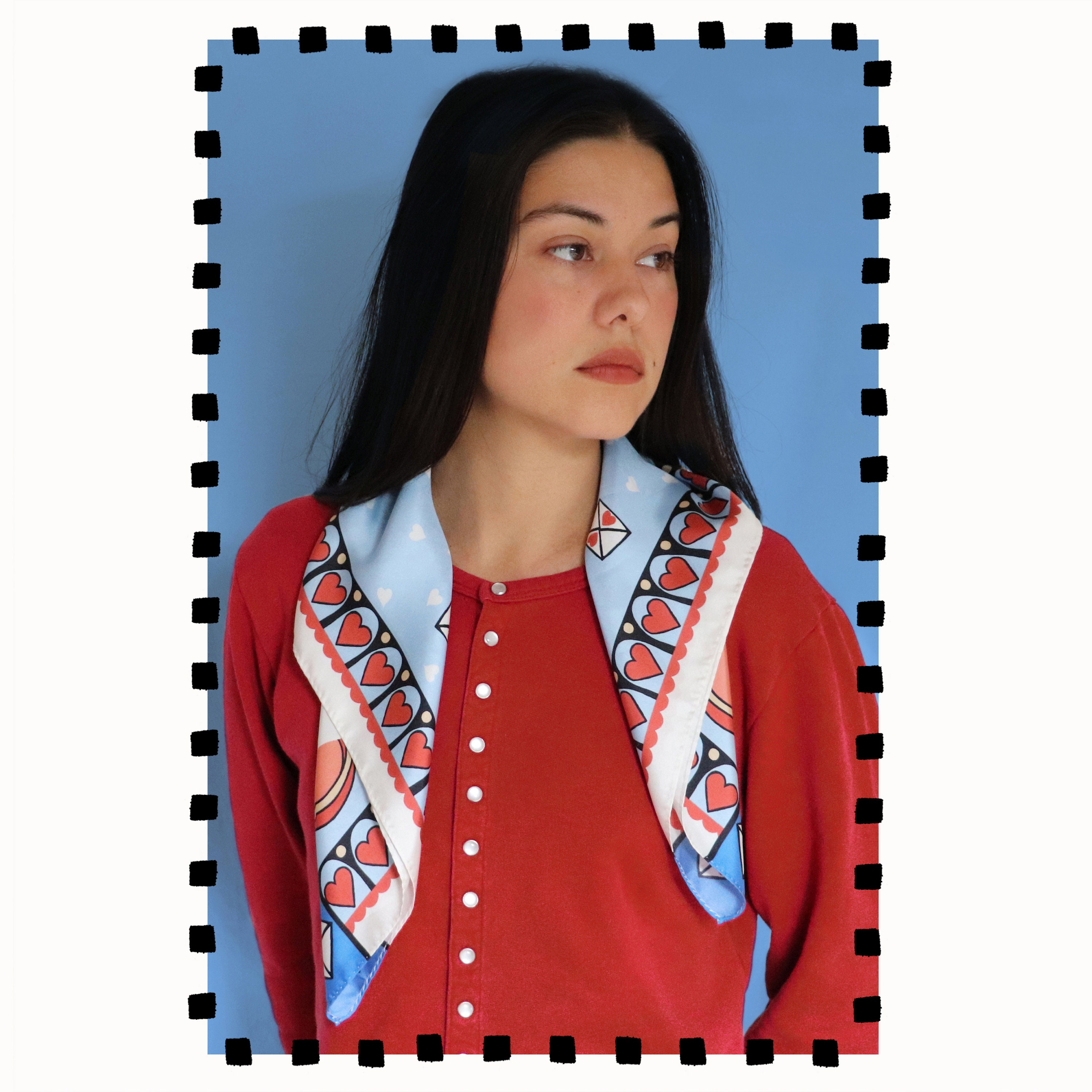 Imagined and drawn by hand in my workshop, in the suburbs of Paris, the scarves are printed in France in Lyon on silk squares with ecological water-based inks.